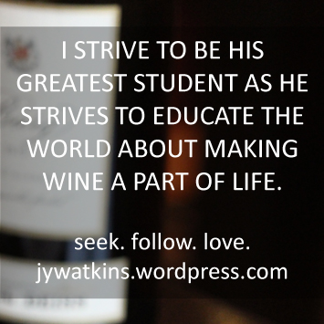 I know a bit about wine, probably more than the average wine drinker, because Chad teaches me and I make an effort to learn so that we can talk about all the nuances. It’s important to him, so it’s become important to me. I ask him questions and guess at answers to see if I’m close. I always hope he sees my knowledge as his victory. I strive to be his greatest student as he strives to educate the world about making wine a part of life.