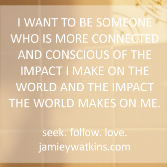 I too want to be more aware of how I impact the world and the world impacts me. This is something we should all strive for.
