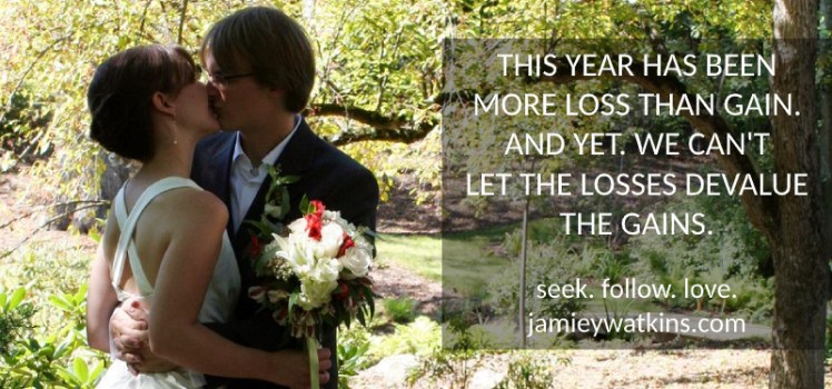 My fear is we sometimes let the darkness overshadow all the good. Because there has been a lot of good despite the hardship of this past year. This year has been more grief than celebration, more loss than gain. And yet. We can’t let the losses devalue the gains. We promised eleven years ago to choose to love each other every day. There have been days where this was a harder promise to keep than others, but I think we’ve still managed it. And we’ll keep at it by remembering how very much we have despite how very much we’ve lost.
